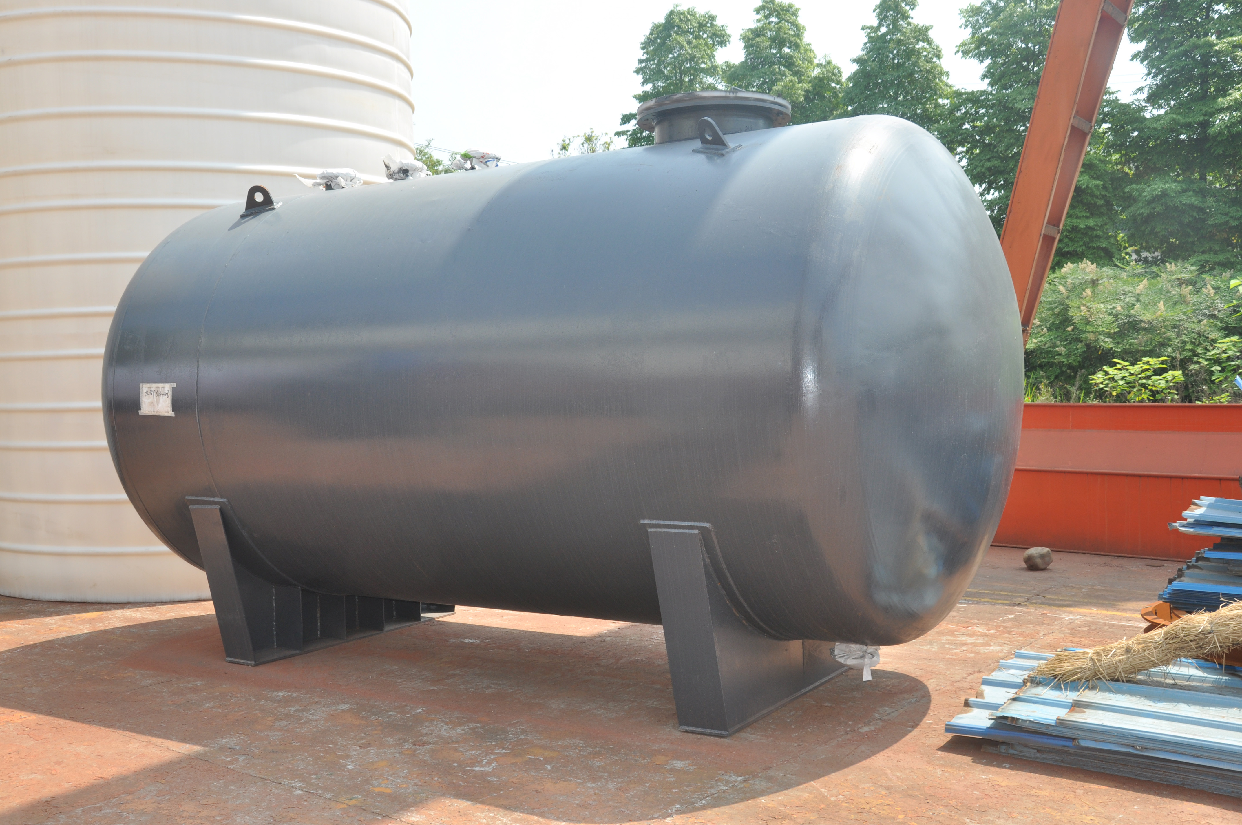 2、卧式全塑PE储罐须安置联体支架或固定水泥支座。